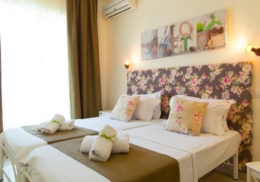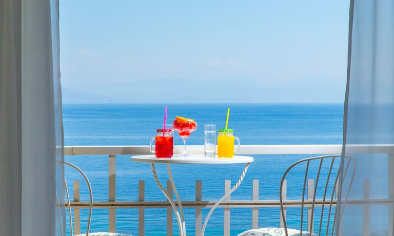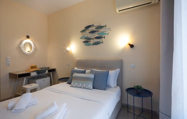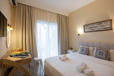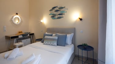 The Double Rooms with Sea View of Aurora Beach Hotel are richly decorated and stylishly appointed. Each one unique, they provide guests with an intimate oasis of comfort.